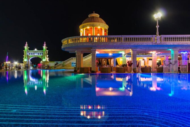 Пребывание в отеле основано на системе все включено. В нее входит проживание в номере выбранной категории, трехразовое питание на шведском столе, неограниченное посещение парка водных аттракционов, детского городка и игрового центра. Заплатив один раз, вы пользуетесь всей инфраструктурой отеля.