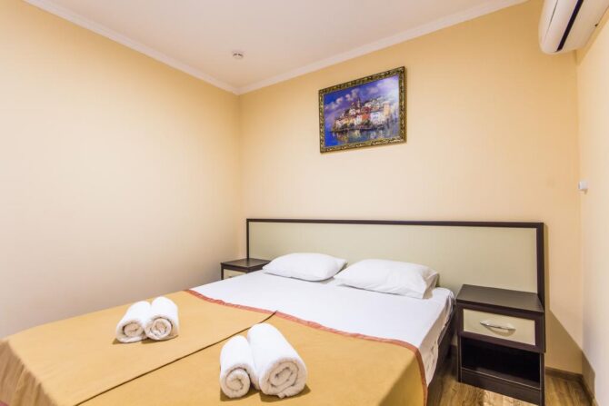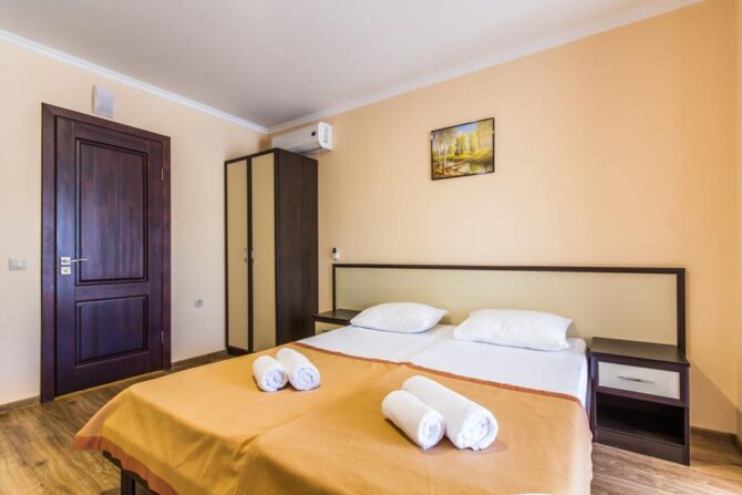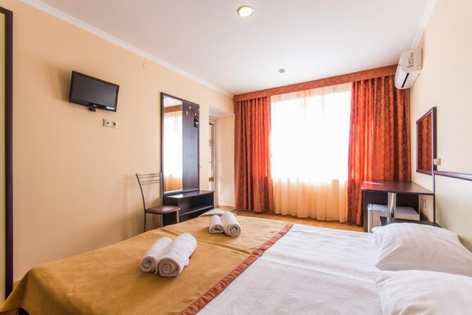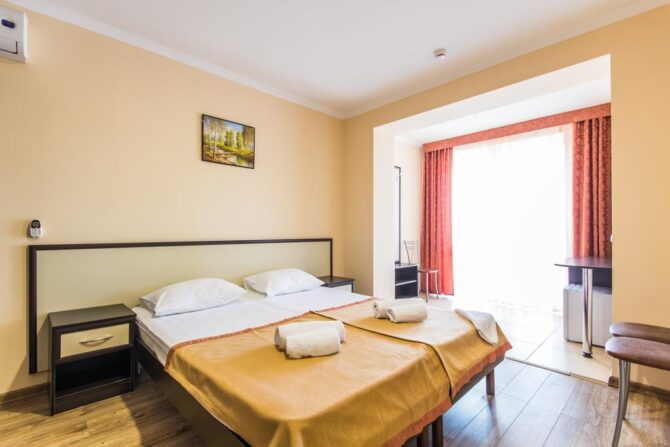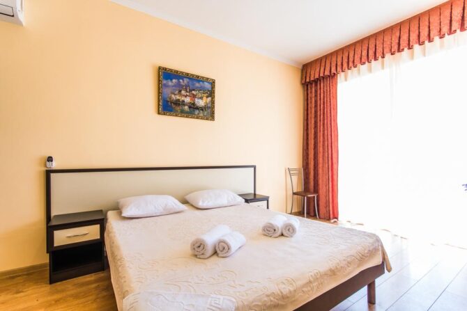 Самыми востребованными являются стандарты для двоих или семейные. Номера просторные и технически оснащенные, с красивой современной мебелью. Почти в каждом есть балкон, с которого вы будете любоваться на горы или море. Очень многие гости отмечают удобные кровати, без которых невозможен полноценный отдых.