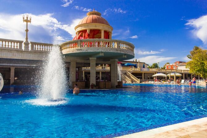 Отель Альбатрос предлагает большой выбор развлечений для своих гостей. Он по праву может гордиться самым современным и большим в данном районе парком водных развлечений. В нем 5 бассейнов разной глубины с чистейшей водой, соединенных водной рекой. В аква — комплексе каждый найдет себе занятие: глубокий спортивный бассейн подойдет для профессионалов; дети резвятся на глубине менее метра или играют на аттракционах; бассейн с поющими яркими фонтанами поразит всех своей уникальностью.