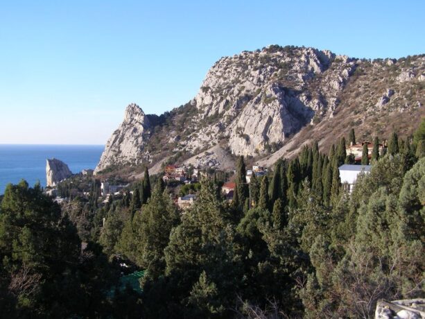 - Алупка-Исар или гора Крестовая высотой 462 метра находится сразу за городской чертой. На нее можно совершить минивосхождение по довольно широкой утоптанной тропе. Понадобится хорошая обувь, репелленты, вода и головные уборы.