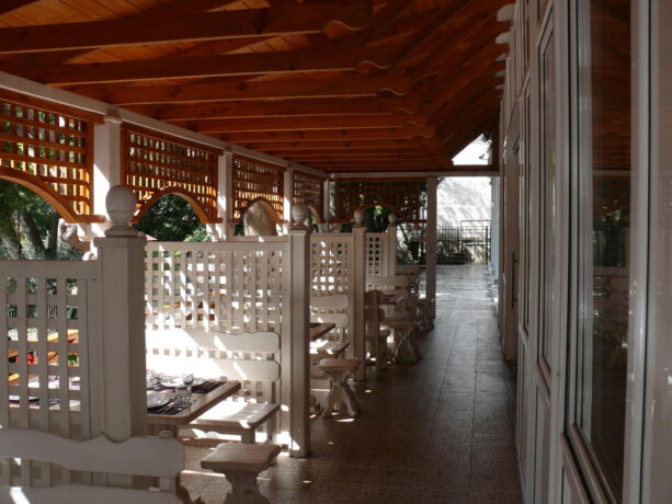 В номерах нет возможности хранить и готовить пищу, поэтому подъедать потихоньку по ночам купленную в супермаркете снедь не получится. Нужно искать место, где можно поесть без риска для здоровья. В Алупке такие встречаются.