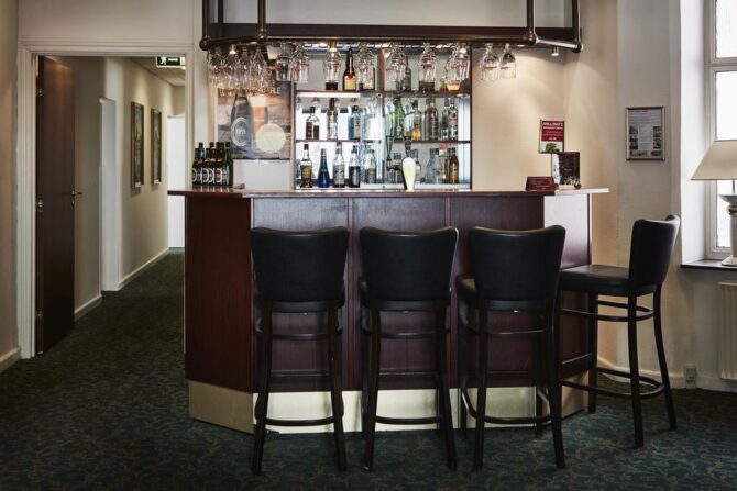 К Ansgar проникаешься ещё большим уважением, когда узнаешь, что в этом, по сути, сказочном замке, есть прилично оснащенный и отлично функционирующий бизнес-центр, с конференц-залом, широкополосным доступом в Сеть, факсом, сейфом и тд. А ведь и это не всё! Лобби-бар, круглосуточно действующий – визитная карточка всех отелей премиум-класса – решительно! Пожалуйста! Лобби-бар в отеле, похожем на кусочек наполеоновской Европы!