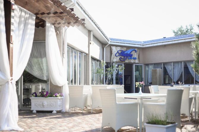 Ресторан расположен на открытой веранде, оформленной романтичными светлыми занавесками. Тут намного дороже, чем в Москве, Сочи или Ялте.