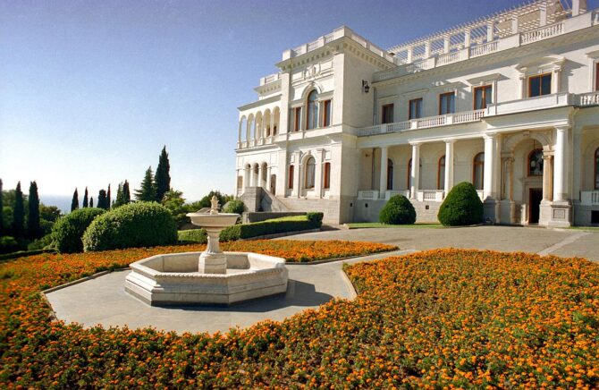 Без сомнения, это самая знаменитая достопримечательность Ливадии, бывшая резиденция Романовых. Дворец, который мы видим сейчас, был построен по велению Николая Второго, и в нем в 1945 году проходила известная всей истории встреча — Ялтинская.