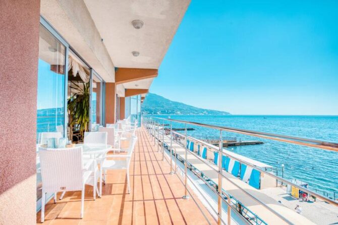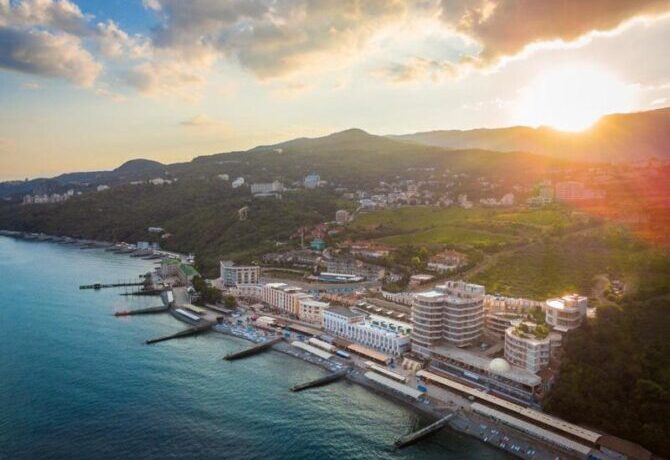 Роскошный отель построен на западе Большой Ялты, в пешей доступности от Приморского парка и променада набережной. До центра Ялты всего 5 км, можно заказать такси в отеле. Из аэропорта доберетесь за час. В этой части курорта хорошо налажена система городского транспорта, и гости любят путешествовать таким образом в аквапарк, зоопарк и дельфинарий Ялты.