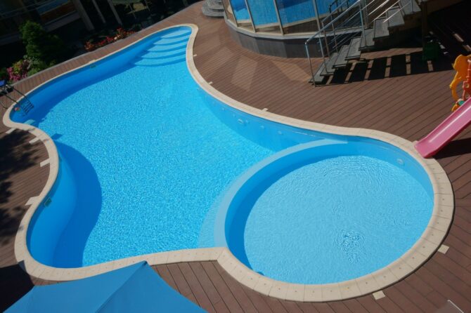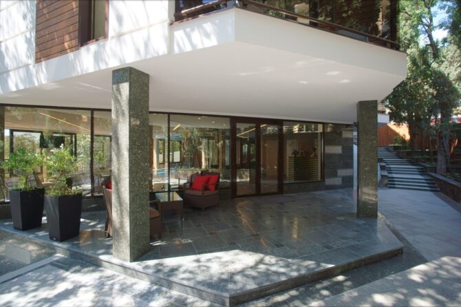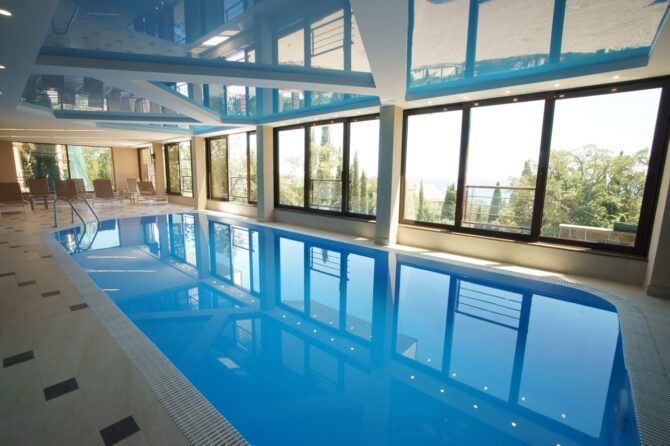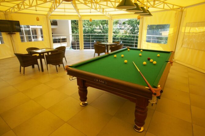В комплексе есть бассейн с лягушатником, который открыт только в летний сезон. Еще один (закрытый) бассейн находится в третьем корпусе — можно использовать круглый год. На крышах трехэтажных домов расположены два открытых пространства: площадка для осмотра природы и достопримечательностей (корпус №2) и солярий с небольшим ресторанчиком (корпус №3).