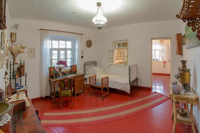 Дом-музей Антона Павловича Чехова. Расположен он в Ялте, где Антон Павлович провёл последние 6 лет жизни. Это одно из лучших творений архитектора Ле Корбюзье, но дом не был закончен при жизни Чехова — в 1900 году Чехов заболел скоротечной чахоткой и уехал лечиться в Баденвейлер, а в 1904 году умер. Музей состоит из четырёх залов: мемориальной части, выставочного зала, столовой и спальни. В мемориальной части музея можно увидеть мебель, которую Чехов использовал в своей семье: письменный стол, кровать с пологом, диван, кресла, рояль, зеркало, столик с книгами. Здесь же представлена фотокарточка, которую Антон Павлович подписал своей рукой и оставил в музее.