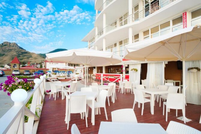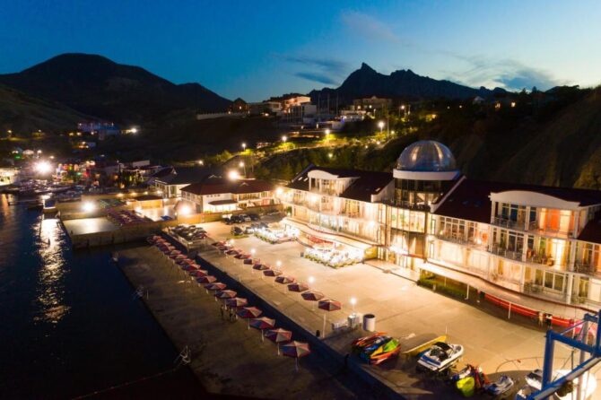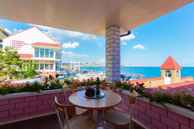 Отель построен у самой границы с заповедником Кара-Даг. Это экологически чистый район, где никогда не было крупного промышленного производства. Единственное предприятие, работающее в поселке – это Коктебельский завод марочных вин и коньяков.