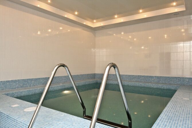 В качестве разнообразия досуга гостям предлагается посетить финскую сауну. К их услугам – горячая сухая парная, массажный кабинет, бассейн и комната отдыха. Услуга оплачивается дополнительно. После термальных процедур можно окунуться в прохладную купель, посмотреть телевизор, уютно расположившись на мягком уголке, выпить по коктейлю или устроить чаепитие из полезных травяных сборов.