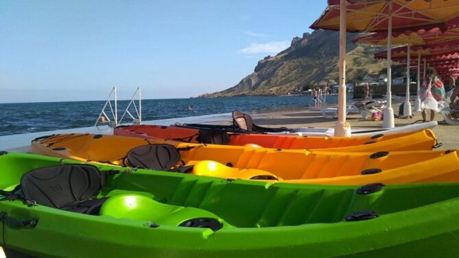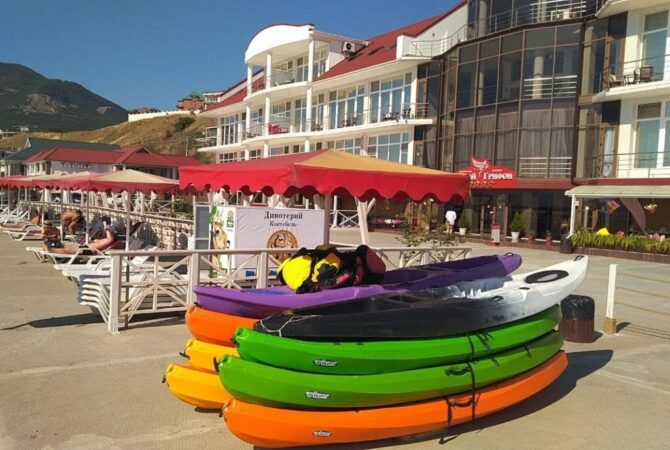 С этими и другими достопримечательностями познакомят гостей Коктебеля в экскурсионном бюро отеля «Белый грифон». Главным местным сокровищем является заповедная зона Кара-Дага. К его скалам и бухтам ежедневно отправляются туры на каяках. Путешествие проходит вдоль побережья потухшего вулкана. Если нет желания грести веслом, то можно отправиться в пеший поход по горным дорогам и тропам.