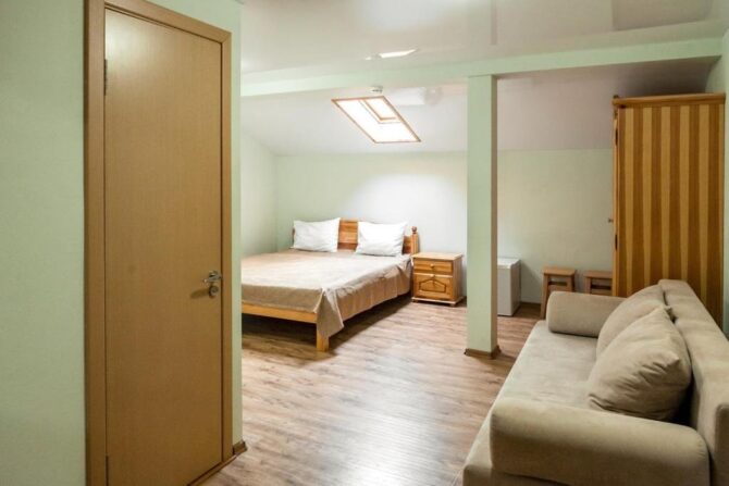 Отель располагает номерами двух категорий комфортности: двухместный стандарт и «Комфорт». Стандарт занимает площадь 14 кв. м. В нем размещены две односпальные кровати, тумбочка, место для личных вещей и санузел с душем. Этот вид номеров рассчитан только на двоих и добавление дополнительного спального места будет крайне проблематично. В отличие от стандартных, номер «Комфорт» располагает площадями от 30 до 35 кв. м. Здесь могут разместиться от 2-х до 6-ти человек. Для детей предоставляются манежи-кроватки по запросу.