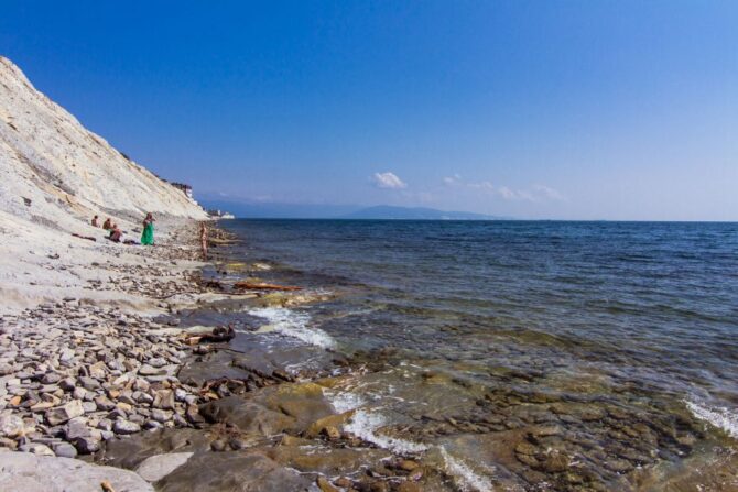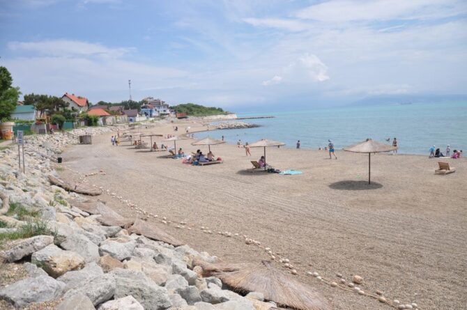 Уникален этот пляж тем, что даже в самый пик сезона, здесь можно всегда найти спокойное место без большого скопления людей. В сезон открыта оборудованная площадка для детей с горками и батутами. Нужно отметить, что была проведена реконструкция пляжа, и побережье засыпали новой мелкой галькой.