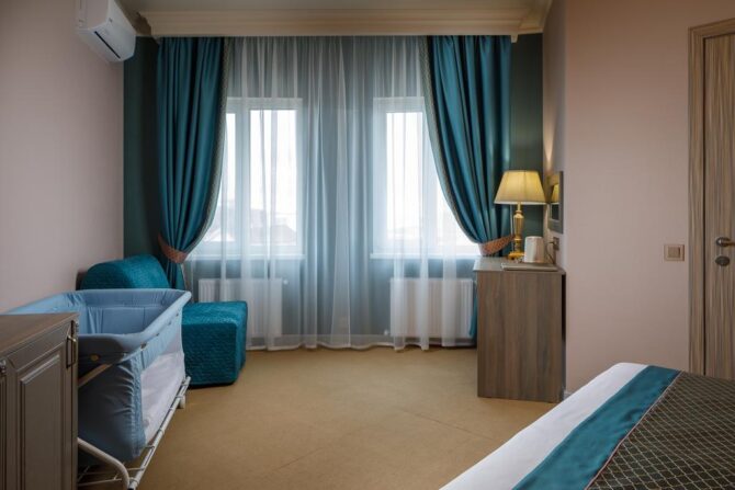 Отдыхая с ребенком в любом из номеров, по просьбе администрация предоставляет детскую кроватку. Услуга входит в стоимость проживания.