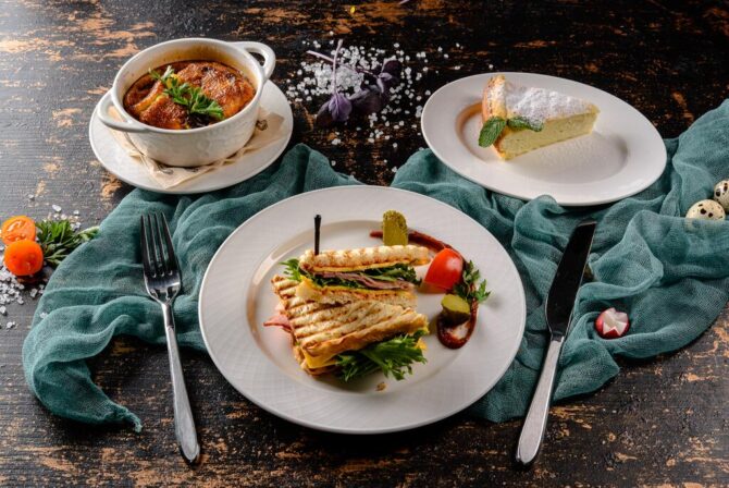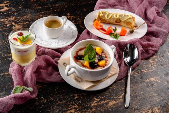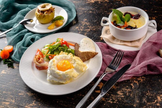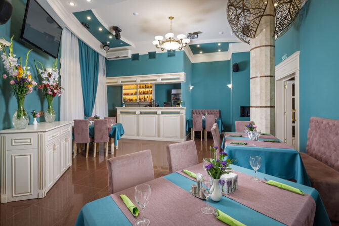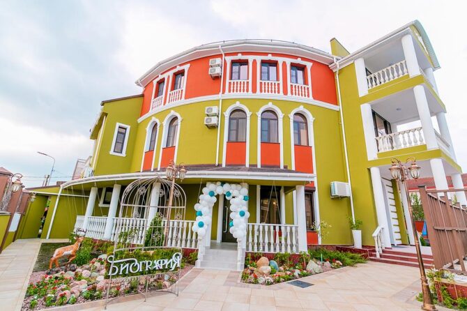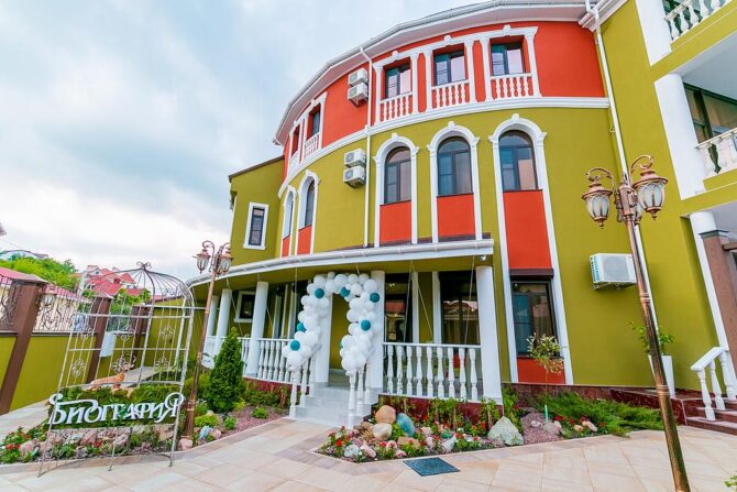 На территории отеля «Биография» располагается ресторан на первом этаже здания. Обслуживание посетителей производится по меню, а также предусмотрено специальное детское меню. Вы сможете отдохнуть в комфортной и атмосферной обстановке. Ресторан также принимает заявки на проведение мероприятий для компаний не более 35 человек. Профессиональные повара настоящие мастера своего дела. Даже самые привередливые гурманы оценят эксклюзивные блюда, приготовленные на Черноморском побережье. Аппетитные и разнообразные завтраки доступны семь дней в неделю. Но в низкий сезон ресторан переходит на другой режим работы, и завтраки нужно заказывать предварительно. Разнообразное меню на каждый день позволит насладиться новыми блюдами. При желании, вы можете заказать блюдо в зависимости от личных предпочтений. Ценителям здорового образа жизни повара приготовят правильно питание в зависимости от личных предпочтений отдыхающего. Завтраки включены в стоимость проживания. Возможна доставка в номер.