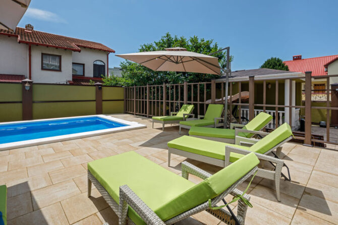На территории отеля есть два стационарных бассейна, которые не имеют ограничений по возрасту для посещения. Один из них находится в помещении, другой на открытом воздухе. Такой бассейн оснащается подогревом, и купаться в нем можно даже в прохладную погоду. Рядом располагаются комфортабельные шезлонги и зонтики. Крытый бассейн находится в сауне. При желании, вы можете посетить только бассейн, если не любите париться.