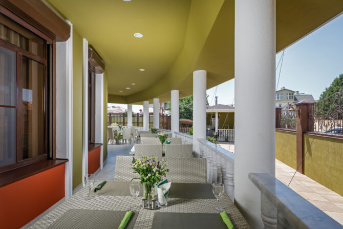 Олег, Мурманск: Современный отель находится в уютном и живописном месте курортного поселка. Территория отеля закрытая, есть собственная стоянка для автомобилей. Охраняется вся территория полностью круглые сутки. На первом этаже мне понравился ресторанчик, который принадлежит отелю. Достаточно разнообразное меню. Обслуживающий персонал вежлив и приветлив. Расположение к морю близкое. Всего 10 минут пешком и уже можно загорать на побережье. Не отказался посетить и местную винодельню, где есть возможность продегустировать различные местные вина.