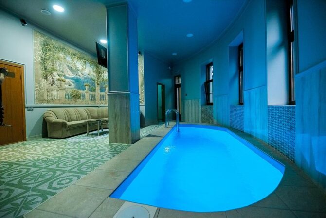 В отеле «Биография» можно найти массу развлечений. На территории есть сауна, рассчитанная максимум на четырех человек. Каждый клиент по желанию может заказать профессиональный массаж. Внутри есть бассейн с прохладной водой, что позволит остыть после посещения сауны.