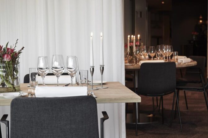 Гурманы и простые любители вкусно поесть останутся довольны своим пребыванием в KongebroGaarden. Кухня отеля интернациональная, учитывает предпочтения международных туристов. На территории отеля расположены рестораны, бары, банкетный зал, а также барбекю.