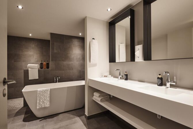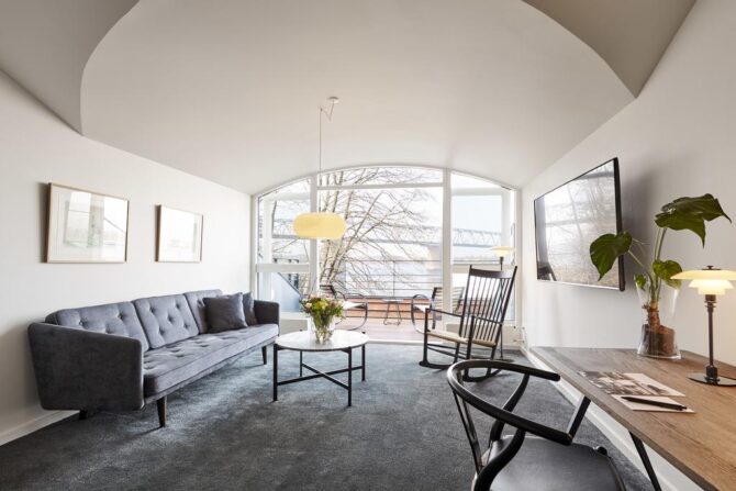 Каждый номер имеет террасу или балкон, окна которых выходят непосредственно на гавань. Помимо этого каждый номер оснащен ванной комнатой, оборудованной по всем европейским стандартам – душ, умывальник и туалет. Также ванная комната имеет в наличии фен для создания неповторимых образов, ведь любой отдыхающий хочет сделать самые неотразимые фотографии. Сам номер отапливается и имеет все для комфортного пребывания. Дополнительная кровать, письменный стол, телевизионный спутник, гладильный пресс, интернет и телефон для связи с родными и близкими, кондиционер, мини-бар и даже сейф – далеко не полный список вещей, без которых мы не представляем жизни и которые так любезно представляет нам отель KongebroGaarden.