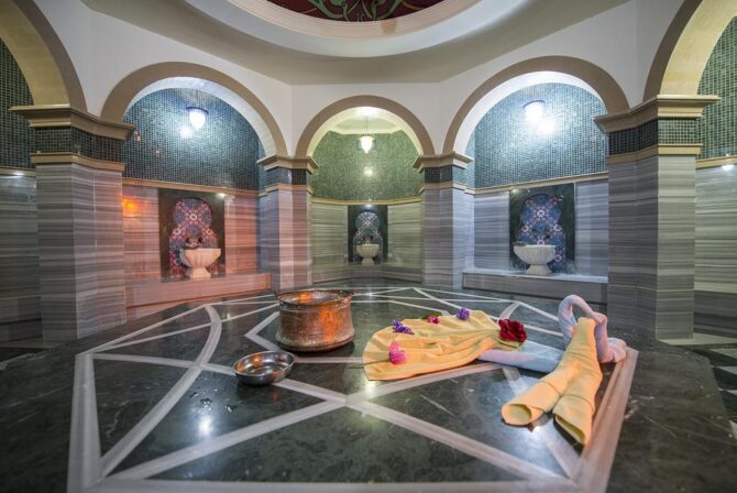 Турецкий хамам, включает в себя огромный множество услуг по лечению организма, релакса и простого отдыха для души. Программы хамама начинаются с бани, для того чтобы открылись поры и тело подготовилось к процедурам. Далее скраб и увлажнение всего тела. Также дополнительно можно сделать массаж ракушками, масочки для лица и тела и скрабирование.