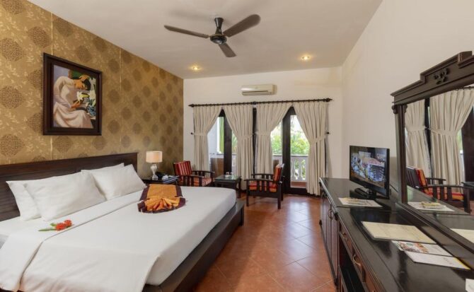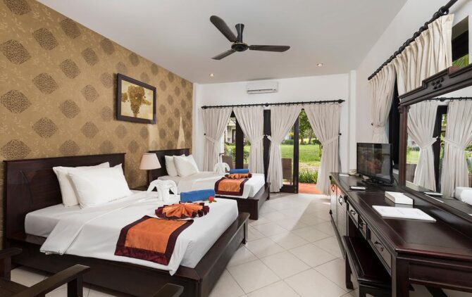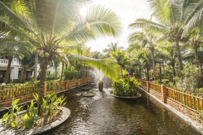 Площадь отеля очень большая, по вечерам можно прогуливаться среди деревьев, есть пруд с рыбками и хороший спа-салон. По цене спа-процедуры не сильно отличаются от тех, что предлагаются на ближайшей улочке, но по качеству явно превосходят.