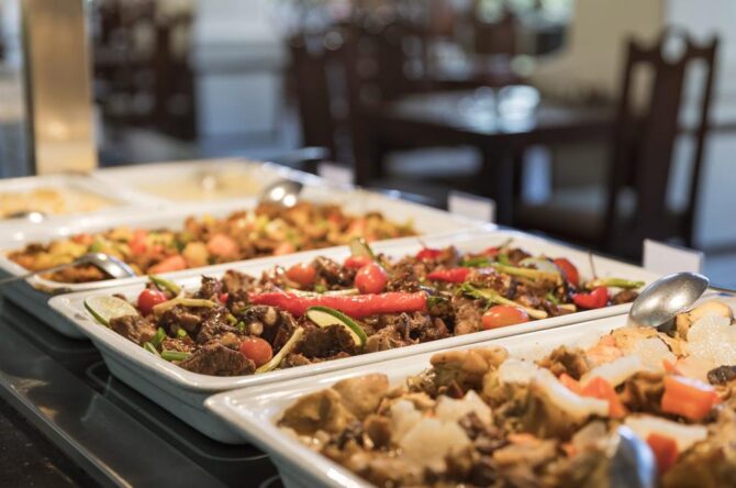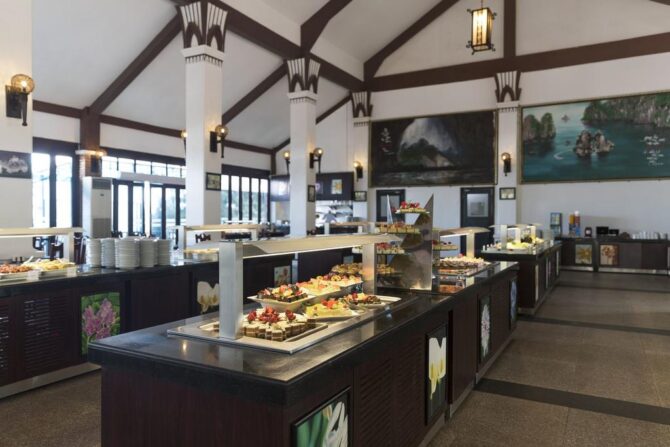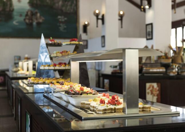 Отдельно конечно же хотелось бы выделить ресторан отеля. Три раза в день в большом ресторане представлено огромное количество разнообразных блюд – салаты, горячее, восхитительные десерты. Особо запомнились необычные деликатесы, такие как жареный крокодил в панировке и страусиные ребрышки на гриле. Вообще кухня очень разнообразная и всегда можно выбрать что-нибудь даже самому привередливому гостю. Фруктов не очень много, тем не менее минимальный набор по сезону всегда присутствовал. Помимо основных приемов пищи в главном ресторане, возле бара и большого бассейна предлагаются непрекращающиеся закуски – это и мини-пиццы и сэндвичи, овощи и фрукты. Нам казалось, что еда не заканчивается на территории Дессоле никогда.
