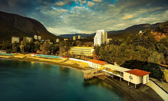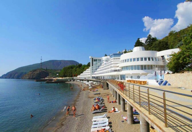 Отель «Европа» — это романтизм дизайна в сочетании с высочайшим уровнем комфорта. От микроклимата до кухни ресторана в гостинице все продумано до мелочей. Белоснежный океанский лайнер расположен между горой Аю-Даг и мысом Плака прямо на побережье Черного моря и прекрасно вписывается в этот природный комплекс.