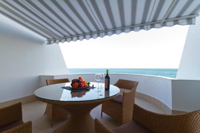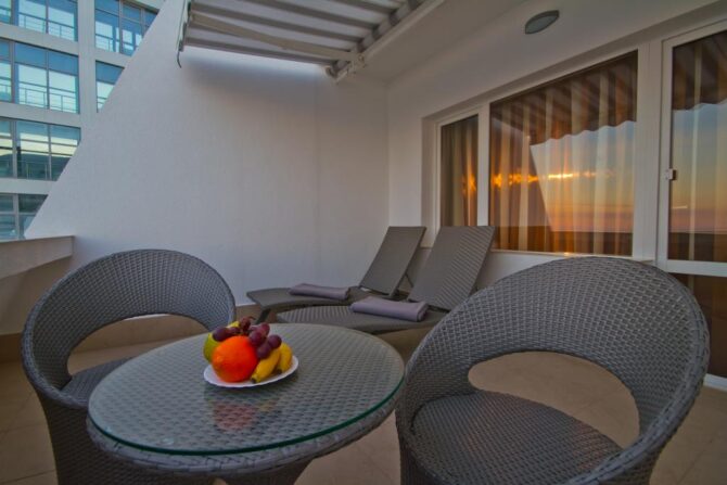 - Апартаменты «Евролюкс». Жилая площадь еще больше — 75 квадратных метров, а балкон имеет форму полукруглого купола. Двухкомнатная квартира с террасой подойдёт туристам, которые любят жить в роскоши.