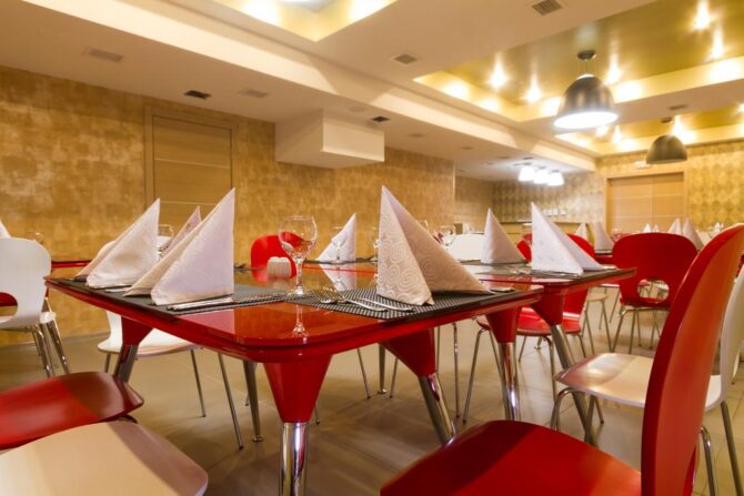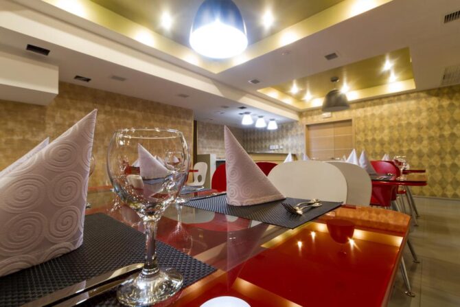 Высокое качество обслуживания в ресторанах отеля сочетаются с доступными ценами и европейским сервисом обслуживания. Насладиться едой можно в элегантных помещениях, либо на свежем воздухе — в открытых террасах. Здесь же можно и заказать банкет.