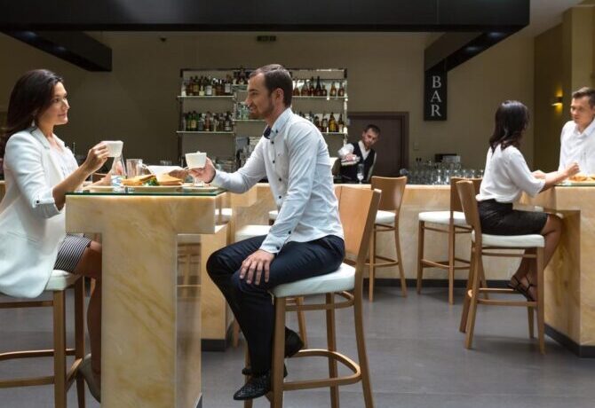 При ресторане открыт лобби-бар. Он работает круглосуточно. Посетителям предлагаются разнообразные напитки, кондитерские изделия, выпечка из собственной пекарни, легкие закуски. Услуга «рум-сервис» доступна в любое время суток. В ресторане на ночь остается на смену дежурный повар. Еду и напитки доставят в номер по первому требованию.