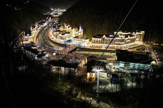 - Зимний тюбинг. Спуски на «ватрушках» стартуют в Олимпийской деревне прямо у олимпийских колец. Трасса стремительно набирает популярность и имеет собственный бугельный подъемник.