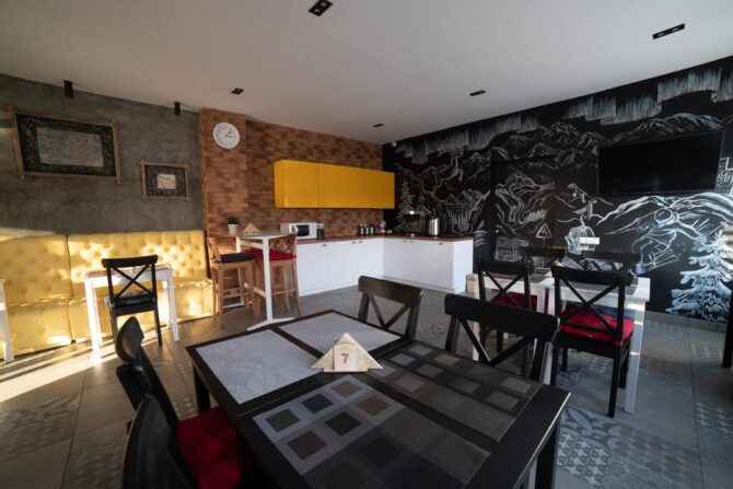 В распоряжении гостей имеются 15 номеров разного размера и категории от «Эконом» до категории «Люкс». Все номера оборудованы ванными комнатами с системой подогрева пола. Во всех номерах (кроме категории «Эконом») есть современные телевизоры с плоским экраном. Из окон некоторых номеров открывается вид на горы.