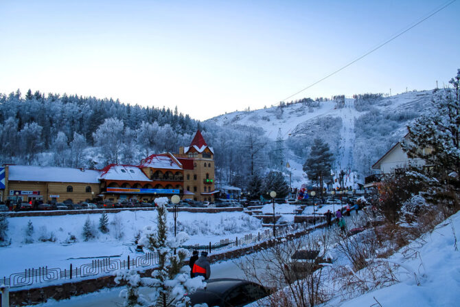 На трассах установлена современная система искусственного заснеживания, что и позволяет продлить горнолыжный сезон практически до самого конца весны.