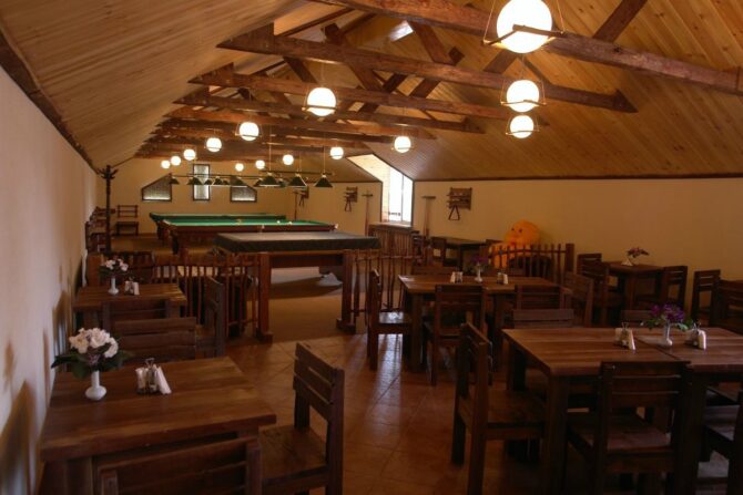В «Горном Воздухе» работает настоящая русская банька. Это отличный способ расслабиться после активно проведенного дня и получить заряд бодрости в преддверии нового этапа катаний. Вечером гости могут сыграть в бильярд или выпить бокал любимого напитка в баре с душевной обстановкой.