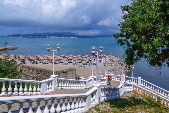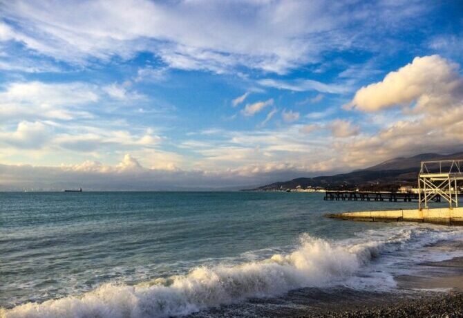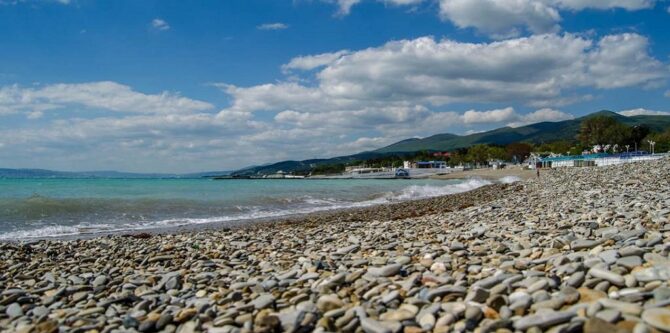 - пляж санатория «Жемчужина моря» — берег галечный. Достаточно большой, делится на детскую и взрослую зоны. Инфраструктура развита отлично, есть все необходимое для отдыха, включая камеры для хранения вещей.