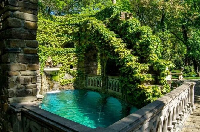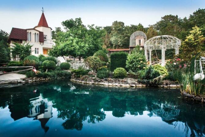 Особого внимания заслуживает Кастальская купель. Интересное место, которое объединяет в себе ресторан под открытым небом и форелевое хозяйство. Здесь можно не только вкусно покушать, но и самому поймать рыбку, которую тут же подадут на обед.