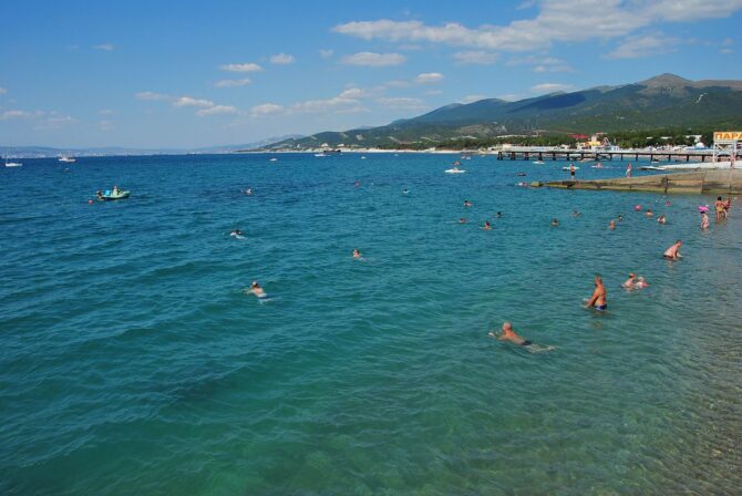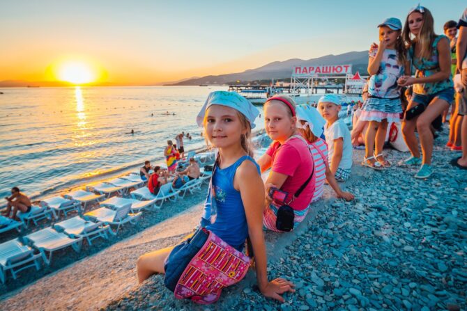 - пляж детского лагеря «Смена» — береговая линия покрыта крупной галькой, а вот морское дно покрывает песок, за счет чего вода кажется слегка мутной. Глубина нарастает постепенно, поэтому сюда стараются прийти семьи с детками. Инфраструктура развита отлично. Есть и раздевалки, и душевые, и туалеты. Работают водные аттракционы;