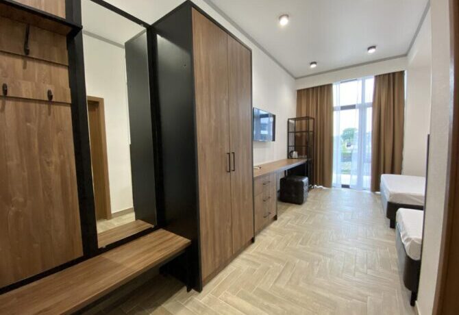 Минимальная площадь номера 25 м2, благодаря хорошо спланированному пространству сохраняется большое количество свободного места. Гости, которые даже на отдыхе не могут отказаться от домашних блюд, могут забронировать апартаменты кухней. В отельных номерах допускается проживание от 2 до 5 человек.