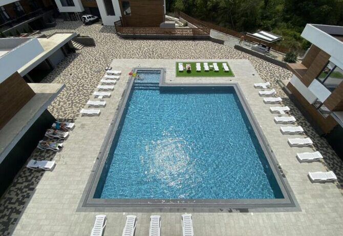 В гостевом доме «AquaVita» работает большой открытый бассейн с чистейшей прозрачной водой. Его размер 18Х13 метров. Для большего удобства вокруг установлены шезлонги и зонты. Наличие бассейна – это отличная альтернатива, если на улице испортилась погода, а на море появились волны. В дальнейшем планируется открытие еще одного бассейна для маленьких постояльцев.