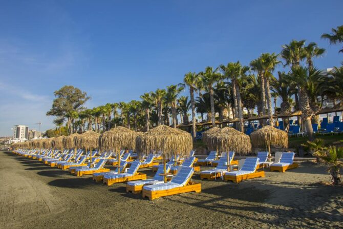 Словом, гостиница подойдет для людей, которые едут на Кипр за спокойным отдыхом, достойным обслуживанием и собственным отельным пляжем. Нужно иметь в виду, что Grand Resort находится в 10 километрах от центра и прогулочной набережной, поэтому перед тем, как влиться в жизнь Лимассола, вам потребуется 15 минут на машине или автобусе, чтобы до нее доехать. Благо автобусная остановка расположена прямо напротив отеля. Кстати, там же есть и велосипедная станция, где спортивные туристы могут арендовать себе отдельное транспортное средство для прогулки по городу.