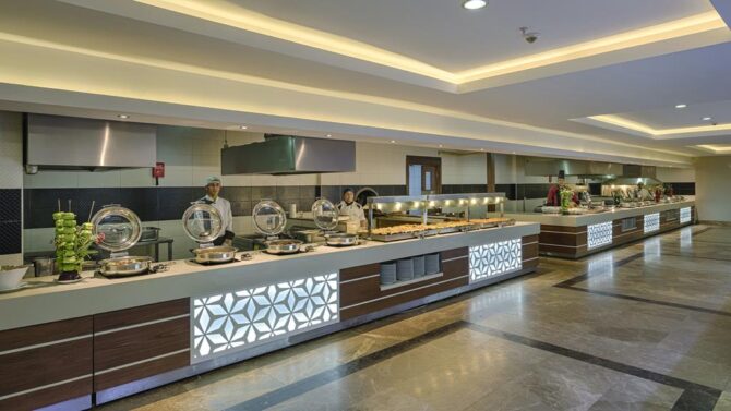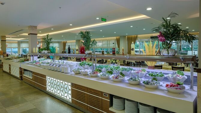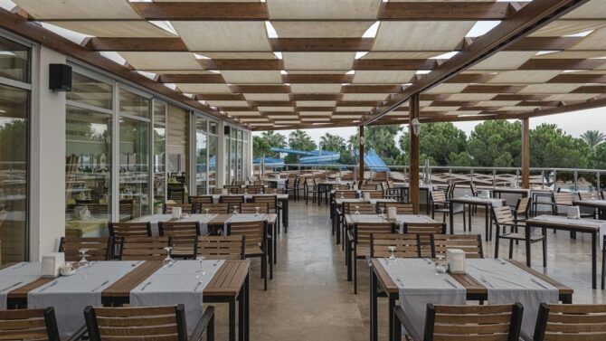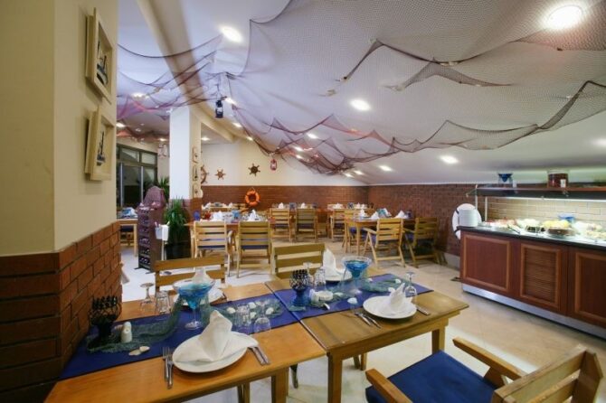 В главном ресторане есть детское меню, стулья для детей, а также диетическое меню. Еще 2 ресторана — итальянский и средиземноморский работают платно по предварительной резервации. Перекусить можно в снэк-баре. В День Рождения постояльцев ожидает комплимент от заведения!