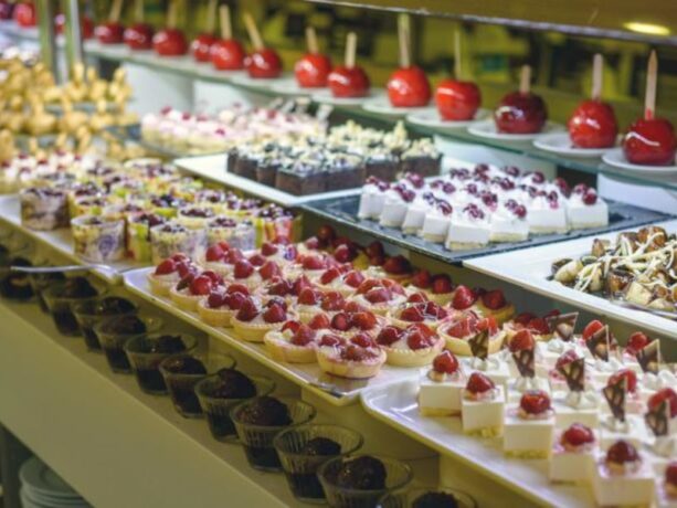 - Десертами можно лакомиться в течение дня — ароматная выпечка, нежные муссы, все для туристов.