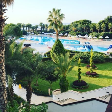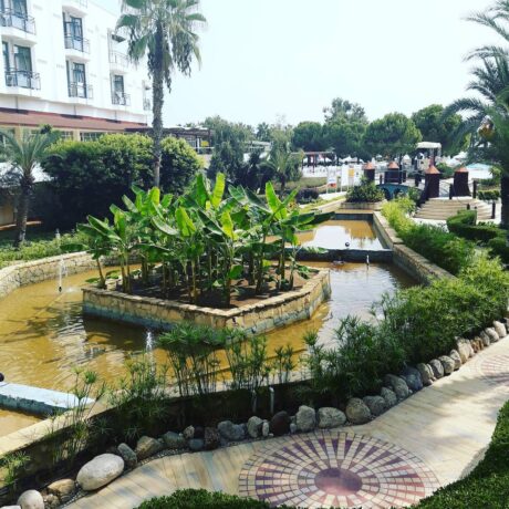Серафимка, Екатеренбург: «В Турции не первый раз, но в этом отеле впервые, есть с чем сравнить. Считаю что преимуществом является огроменная зеленая территория и цены, а не питание, как многим может показаться. На столах бывает скудненько, а вокруг здания действительно красиво — пальмы, мандариновые деревца, эвкалипты создают красоту. Омрачает лишь стрекотание цикад, но к вечеру они затихают. В номерах плохая шумоизоляция, слышно все разговоры — плохо, что вместе с номером нельзя забронировать хороших соседей. Администрации рекомендую обратить внимание на сантехнику, она на последнем вздохе. На пляже хорошо, но песок не просеивается, поэтому мелкий мусор иногда попадается».