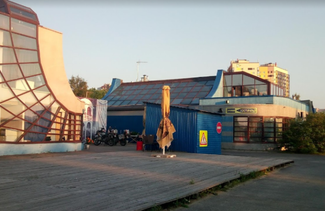 Здание гостиницы находится на берегу реки в некотором отдалении от центра города, что позволяет создавать у гостей ощущение загородного отдыха.