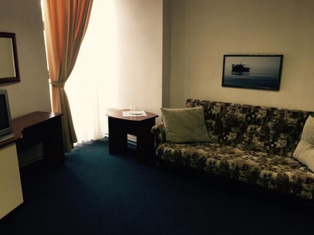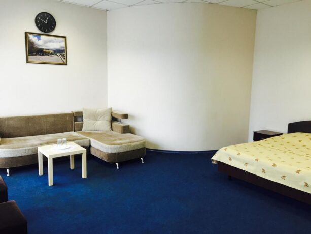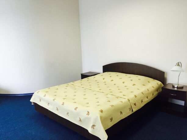- Номер стандарт с кроватью, письменным столом, телевизором, кондиционером, тумбочкой и собственным санузлом;