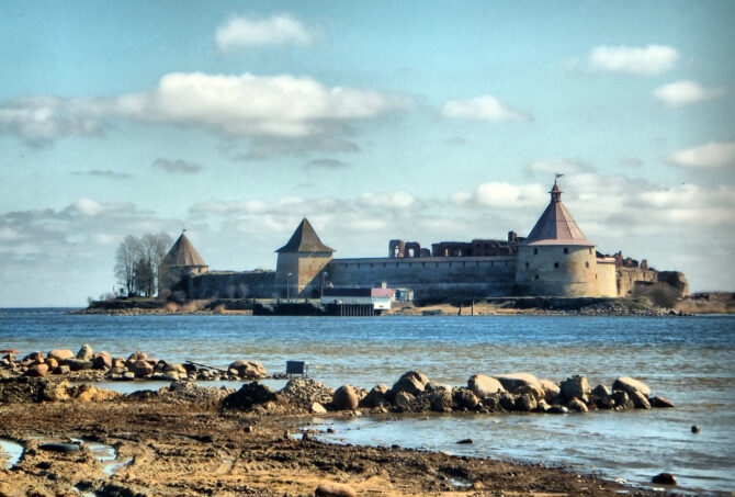 Главная достопримечательность Шлиссельбурга, кроме Ладожского озера – крепость Орешек. Небольшой пятиугольный остров с оборонительными бастионами и башнями на каждом из углов, имеет долгую и богатую историю. Крепость создана в 1323 году и вскоре отвоевана шведами. Именно в этой части Ладожского озера была Невская битва, после которой территория крепости снова стала принадлежать государству ее построившему. После того как граница Российской империи сдвинулась, и эти территории перестали быть границами – крепость стала служить тюрьмой для политических преступников. Сейчас это территория музея и обзорная площадка.