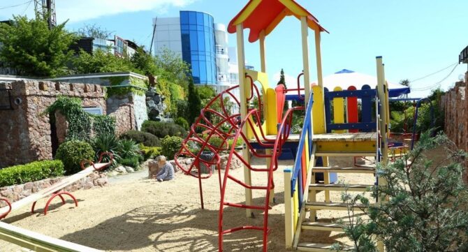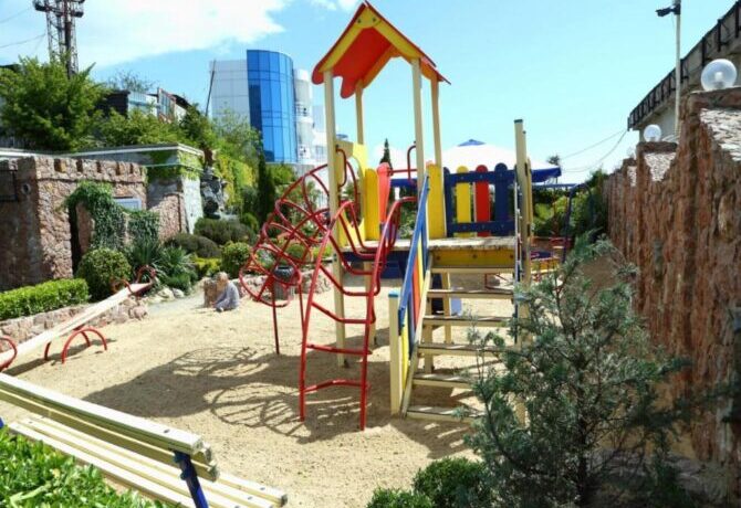Инфраструктура гостиничного комплекса ориентирована на семейный отдых. В ресторане разработано детское меню. На улице оборудована игровая площадка с горкой и качелями (покрытие – песок). В бассейне имеется мелководное отделение, сделанное специально для купания детей и подростков.