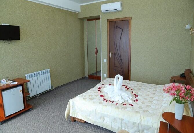 Гостиничный фонд состоит из 46 номеров. Они расположены в 2-х четырехэтажных корпусах. Дизайн и интерьер полностью соответствуют европейским стандартам. В каждом имеется балкон оборудован санузел с душем. В комнатах установлены системы автоматического кондиционирования и отопления. Владельцы позаботились о шумо- и пыле изоляции. Кровати сделаны по евро стандартам, постельные принадлежности гипоаллергенные. Мягкая мебель изготовлена из экологически чистых материалов. Для связи с портье установлена внутренняя телефонная линия. По ней доступно междугороднее сообщение. Сейф электронный с кодовым замком.
