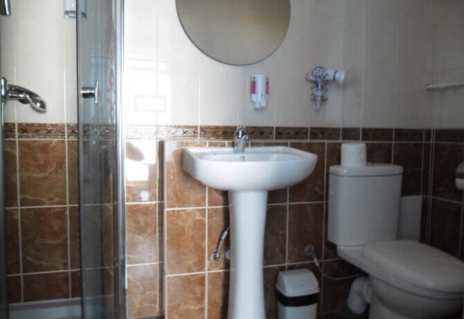 - Обычный стандарт (20 кв. м) рассчитан на пребывание двух человек или семьи с одним ребенком. Для этого имеются два основных и одно дополнительное место на кресле-кровати. Из окон открывается вид на морское побережье. Санузел оборудован душем.