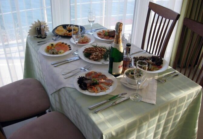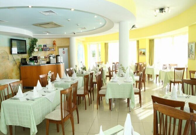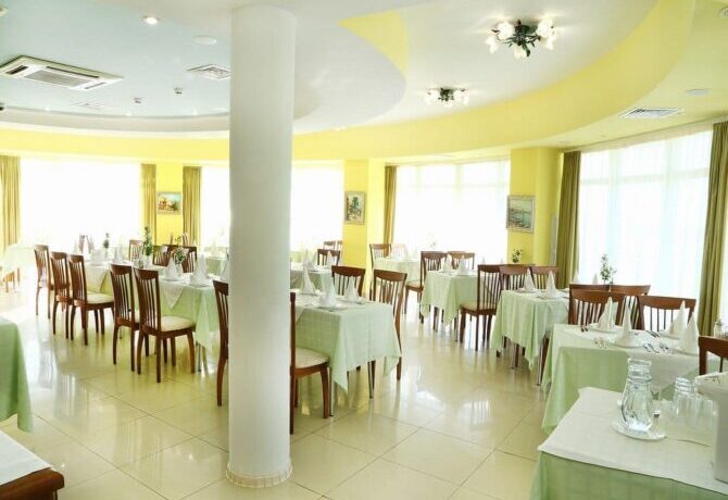 Шеф-повар основного ресторана всегда готов порадовать гостей уникальными авторскими блюдами. Впрочем, они сами убедятся в его искусстве создавать вкусовую гармонию. Отель работает по системе «Все включено». Это значит, что гостей ожидает трехразовое питание, перекусы в снек-баре, алкогольные и безалкогольные напитки. В низкий сезон доступно еще два пакета: один только с завтраком (эконом) и полупансион (завтрак + ужин).